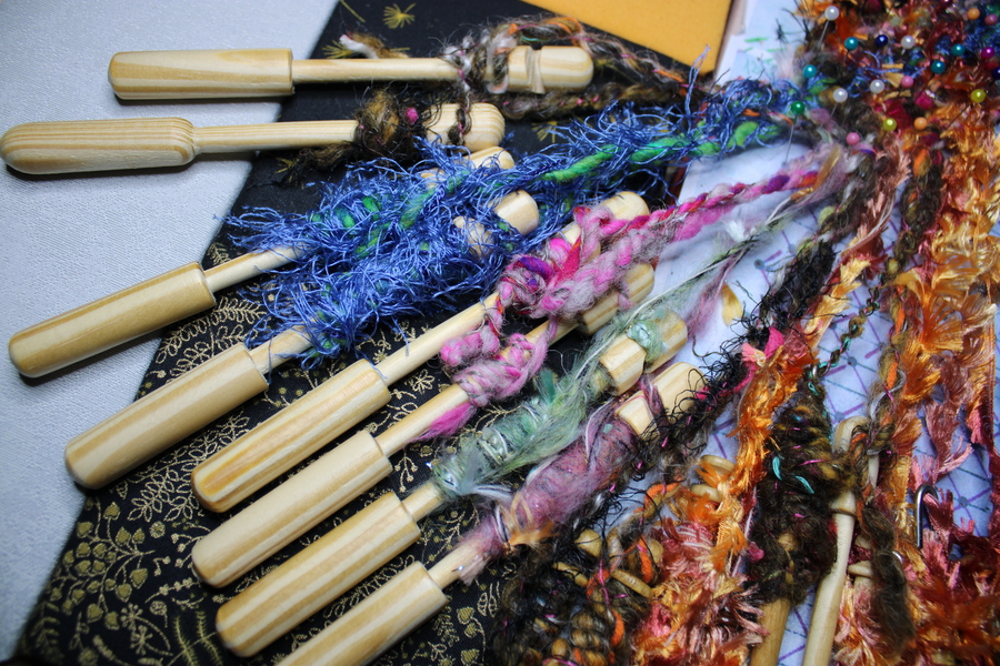 Pour les personnes qui aiment la laine, la diversitée. Elles peuvent s’initier avec des fuseaux adaptés à la laine. Le travail avance vite.
