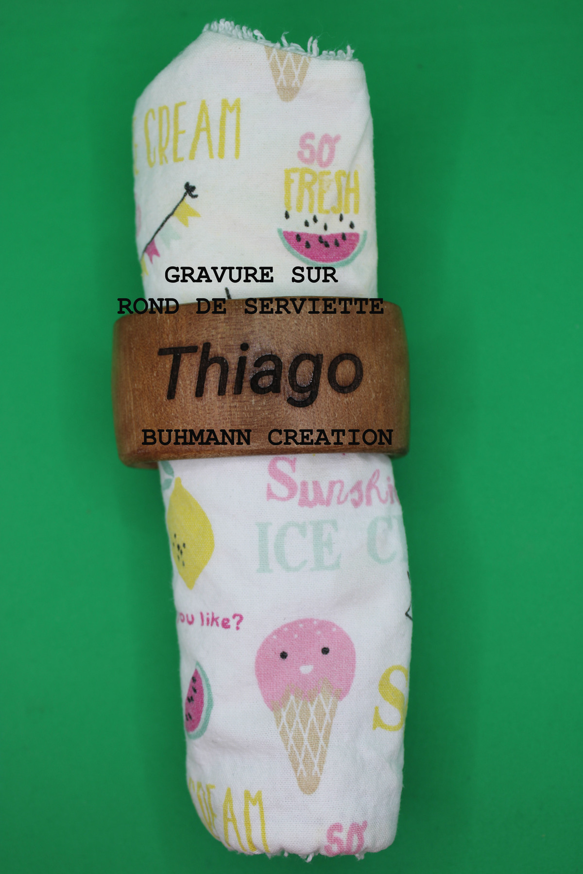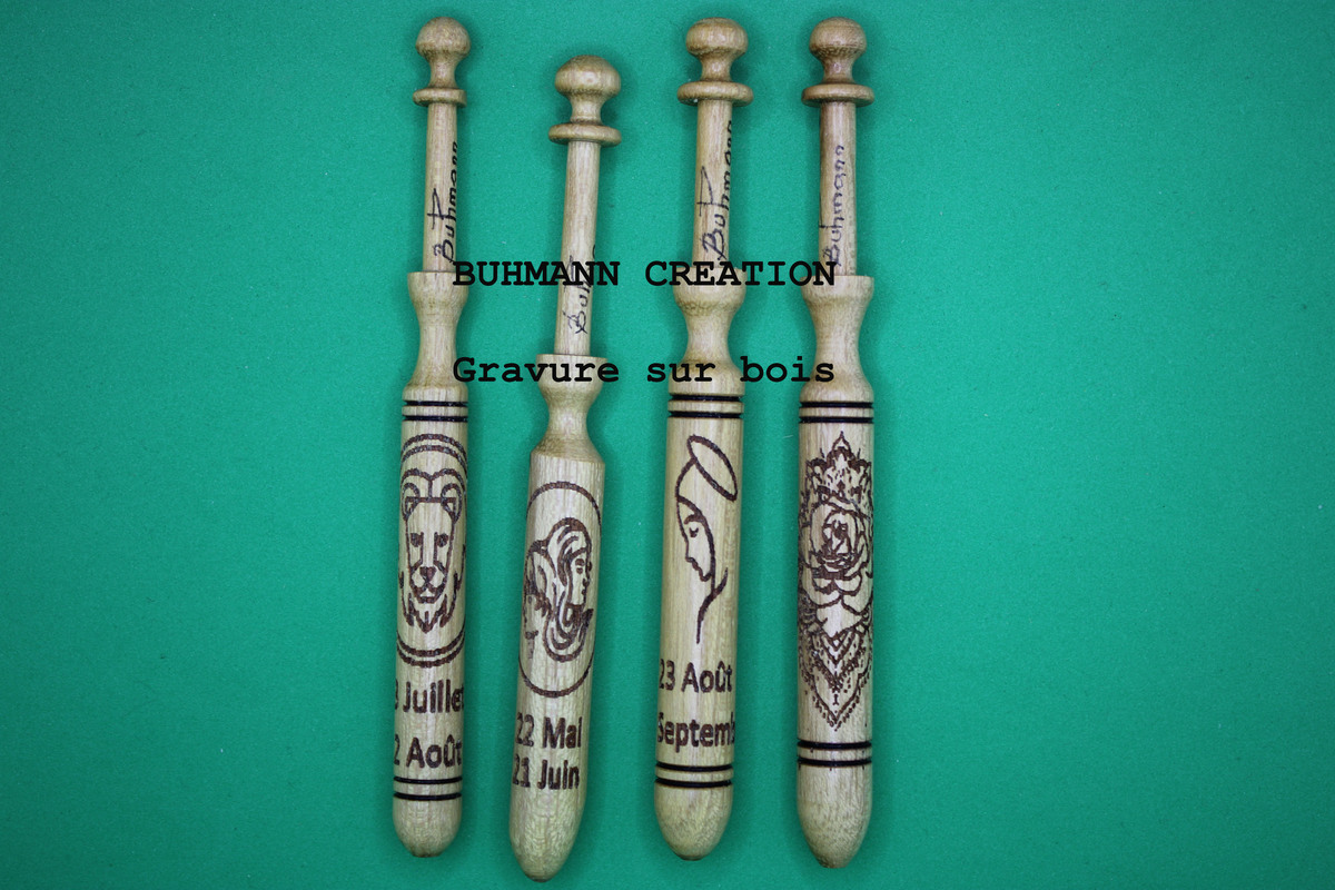 Gravure au laser sur la circonférence du fuseau bois